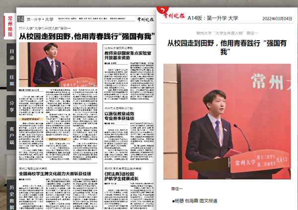 | 常州晚报:从校园走到田野,他用青春践行“强国有我” |