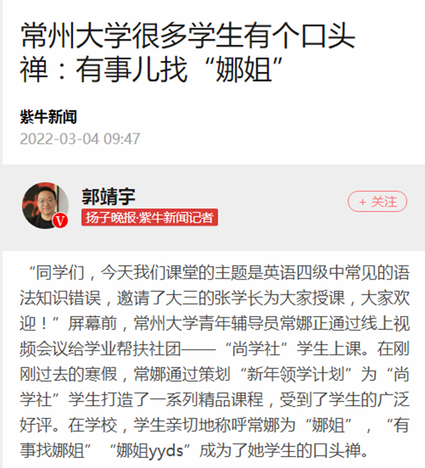 | 紫牛新闻:常州大学很多学生有个口头禅——有事儿找“娜姐” |