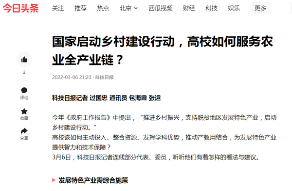 今日头条:国家启动乡村建设行动,高校如何服务农业全产业链?