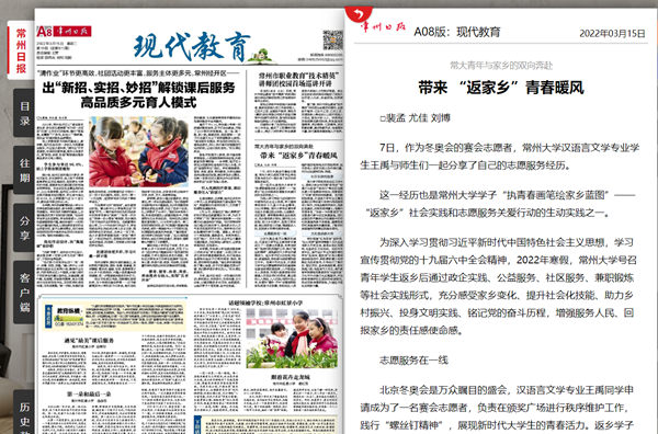 | 常州日报:常大青年与家乡的双向奔赴 带来 “返家乡”青春暖风 |