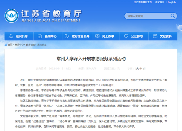 | 江苏教育网:常州大学深入开展志愿服务系列活动 |