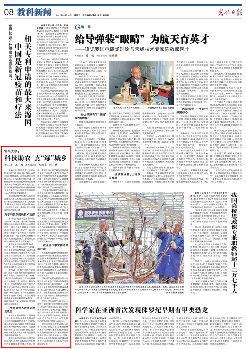 | 光明日报:常州大学——科技助农 点“绿”城乡 |