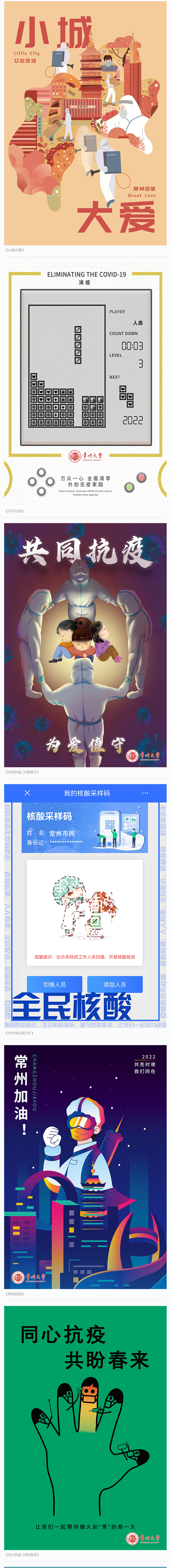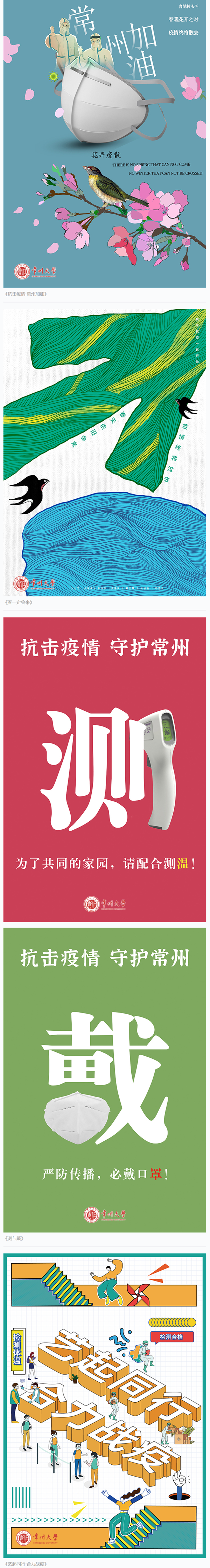 为充分发挥艺术作品凝神聚力、抚慰心灵的独特优势,激发全校师生共同抗击疫情的信心,近日,常州大学美术与设计学院举办了一场抗疫海报设计大赛。短短一周,来自视觉传达系、美术系、产品设计系、环境设计系、数媒系的270名本科生和研究生创作了325幅作品。青年学子们结合所学,以鲜明的设计理念、独特的绘画风格展现了大家战胜疫情的决心和信心,描绘了常州人民众志成城抗击疫情的精神风貌,表达了同心抗疫、共盼春来的美好愿望。