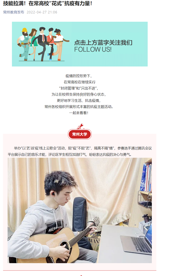 常州教育发布:技能拉满!在常高校“花式”抗疫有力量!