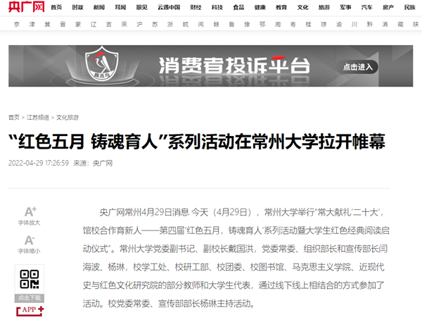 | 央广网:“红色五月 铸魂育人”系列活动在常州大学拉开帷幕 |