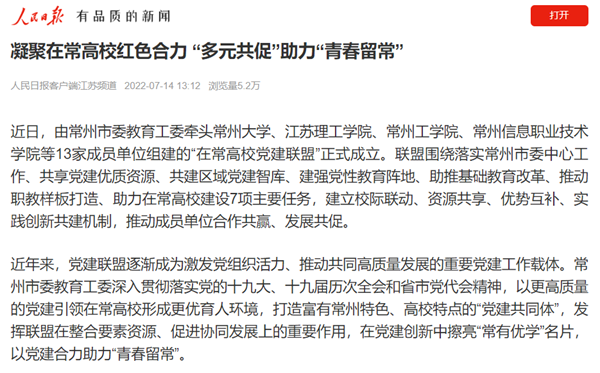 | 人民日报客户端:凝聚在常高校红色合力 “多元共促”助力“青春留常” |