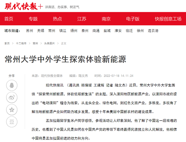| 现代快报网:常州大学中外学生探索体验新能源 |