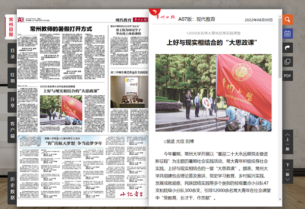 | 常州日报:12000余名常大青年投身实践课堂 上好与现实相结合的“大思政课” |