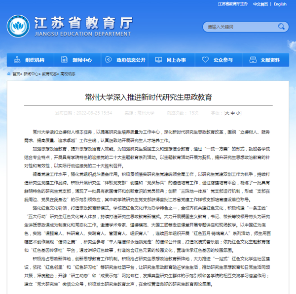 | 江苏教育网:常州大学深入推进新时代研究生思政教育 |