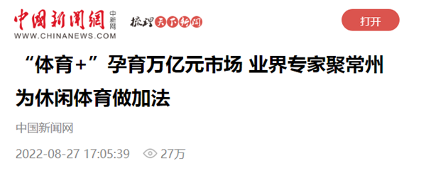 | 中国新闻网:“体育+”孕育万亿元市场 业界专家聚常州为休闲体育做加法 |