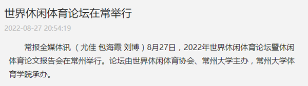 | 常州新闻:世界休闲体育论坛在常举行 |