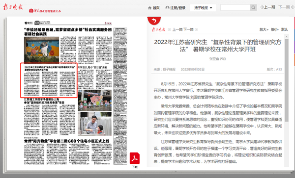| 扬子晚报:2022年江苏省研究生“复杂性背景下的管理研究方法” 暑期学校在常州大学开班 |