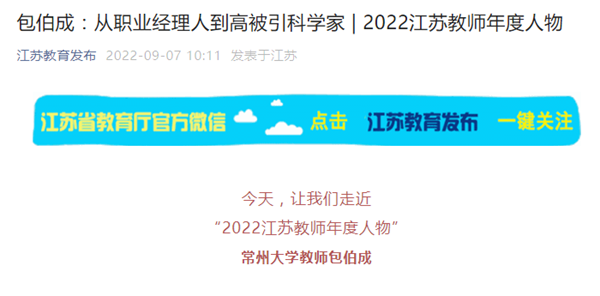 | 江苏教育发布(微信):包伯成——从职业经理人到高被引科学家 | 2022江苏教师年度人物 |
