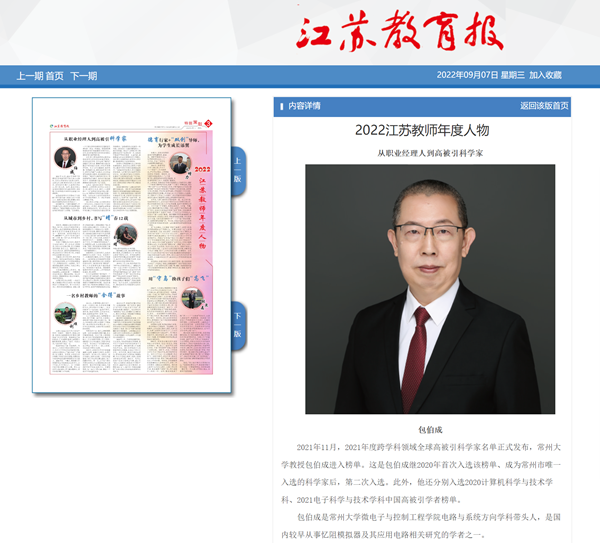 | 江苏教育报:2022江苏教师年度人物——从职业经理人到高被引科学家 |