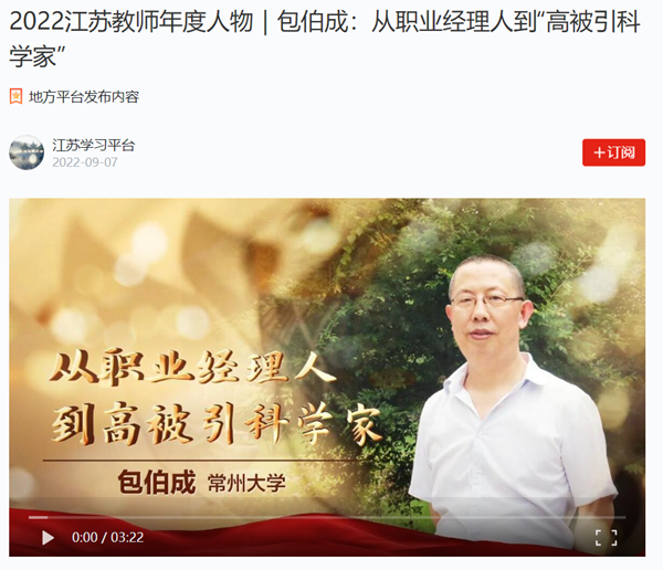 | 学习强国:2022江苏教师年度人物|包伯成:从职业经理人到“高被引科学家” |