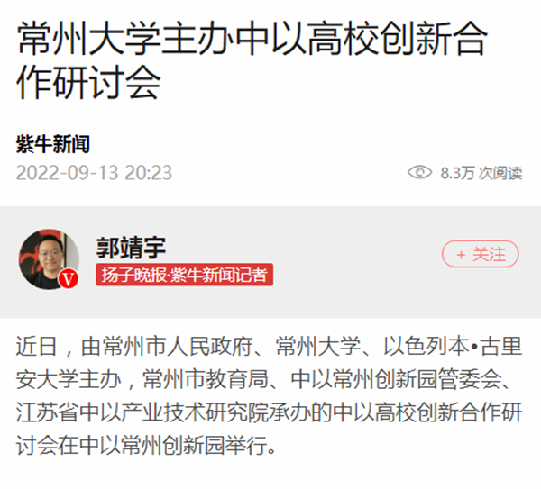 | 紫牛新闻:常州大学主办中以高校创新合作研讨会 |
