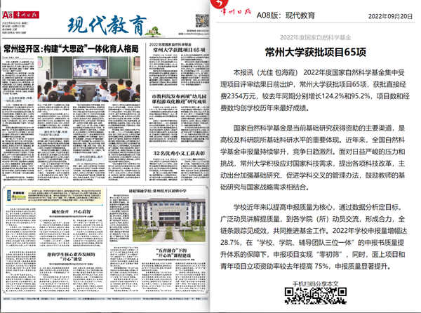 | 常州日报:2022年度国家自然科学基金 常州大学获批项目65项 |