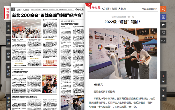 | 常州晚报:在常高校迎新更“赢”心 2022级“萌新”驾到! |