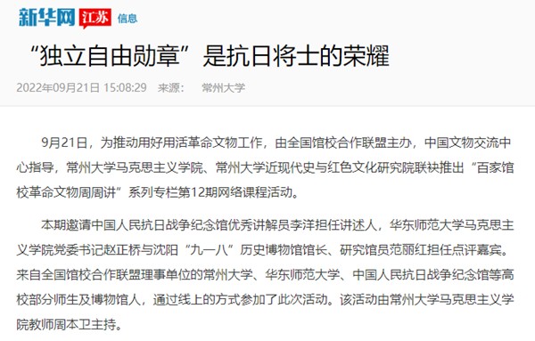 | 新华网:“独立自由勋章”是抗日将士的荣耀 |