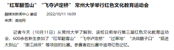 | 荔枝新闻:“红军翻雪山”“飞夺泸定桥” 常州大学举行红色文化教育运动会 |