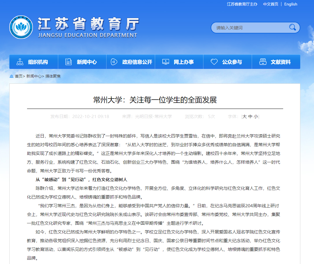 | 江苏教育网:常州大学——关注每一位学生的全面发展 |