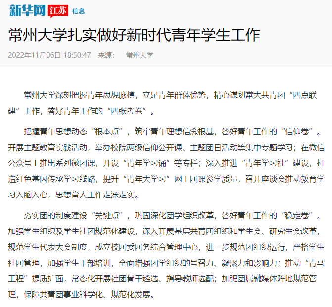 | 新华网:常州大学扎实做好新时代青年学生工作 |