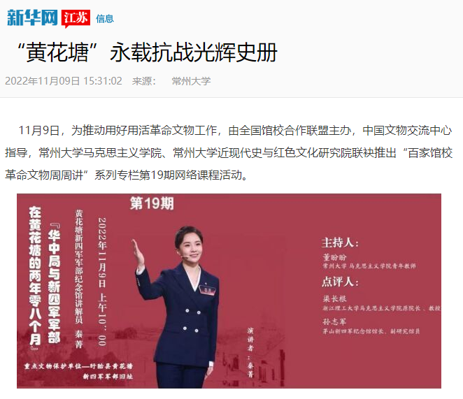 11月9日,为推动用好用活革命文物工作,由全国馆校合作联盟主办,中国文物交流中心指导,常州大学马克思主义学院、常州大学近现代史与红色文化研究院联袂推出“百家馆校革命文物周周讲”系列专栏第19期网络课程活动。 本期邀请了黄花塘新四军军部纪念馆讲解员秦菁担任讲述人,浙江理工大学马克思主义学院原院长、红色文化研究院院长、教授渠长根与茅山新四军纪念馆馆长、副研究馆员孙志军担任点评嘉宾。来自全国馆校合作联盟理事单位的常州大学、浙江理工大学、黄花塘新四军军部纪念馆、聊城职业技术学院等高校部分师生及博物馆人,通过线上的方式参加了此次活动。 秦菁以《华中局与新四军军部在黄花塘的两年零八个月》为题,讲述了国家重点文物保护单位——黄花塘新四军军部旧址的故事。秦菁讲到,新四军将士在黄花塘两年零八个月期间,和人民血脉相连,休戚相关,心中装着人民,时刻关心人民的疾苦,留下了许多感人的故事,至今仍让当地老百姓念念不忘。华中局和新四军军部还领导新四军各部队和华中各抗日根据地开展根据地建设,开展整风、大生产和整训运动,适时转入战略反攻,夺取抗战的最后胜利。“在抗日战争的关键时期,黄花塘成为华中敌后抗战的战略指挥中心,它的名字也载入了中华民族抗战保家卫国的光辉史册。”秦箐说。 渠长根在点评时认为,时移事易,唯有精神不灭,新四军永载史册。新四军精神必将在一代又一代后来者面前生辉、传承,成为实现中华民族伟大复兴的不竭动力。 孙志军点评时说,秦箐同志的讲解历史细节清晰、语言生动感人,使得观众特别是青少年学生在聆听革命故事、走进新四军历史中激发情感认同、激活红色基因。 据悉,“百家馆校革命文物周周讲”系列专栏活动从今年5月4日开讲以来,已经连续举办19期,共有全国19座革命博物馆、纪念馆的19位优秀讲解员,为我们讲述了19件重要的革命文物故事,由38位校、馆著名点评人进行了精彩评论,多家单位组织收看和学习。本活动将继续融合馆、校优势资源,强强联合互补,真正把“馆校合作 共育新人”的联盟使命落到实处。 新华网:http://www.js.xinhuanet.com/2022-11/09/c_1129113918.htm (编辑:刘博) |