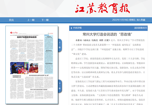 | 江苏教育报:常州大学打造会说话的“思政墙” |
