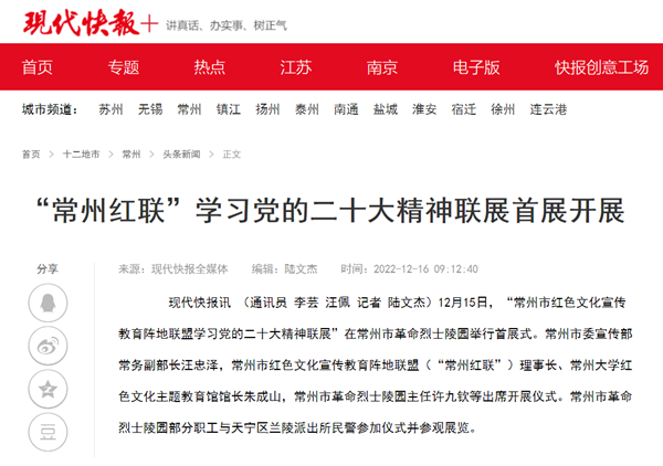 | 现代快报网:“常州红联”学习党的二十大精神联展首展开展 |