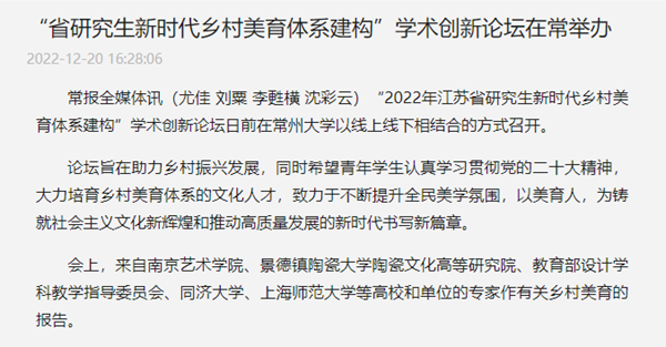 | 常州新闻:“省研究生新时代乡村美育体系建构”学术创新论坛在常举办 |