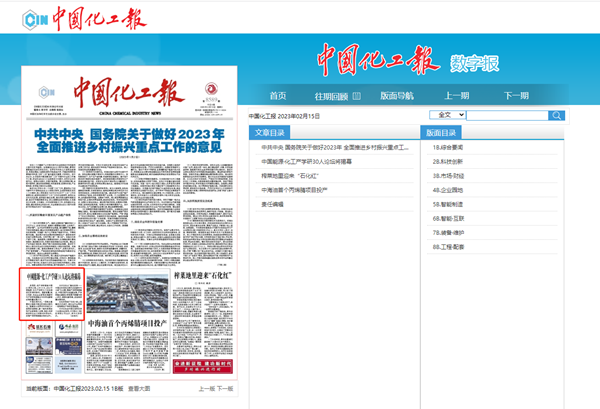 | 中国化工报01版 2023.2.15 发布时间: 2023-02-24 |