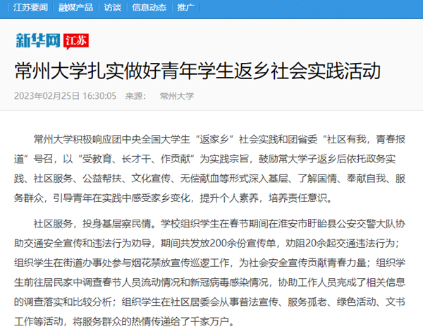 | 新华网:常州大学扎实做好青年学生返乡社会实践活动 |