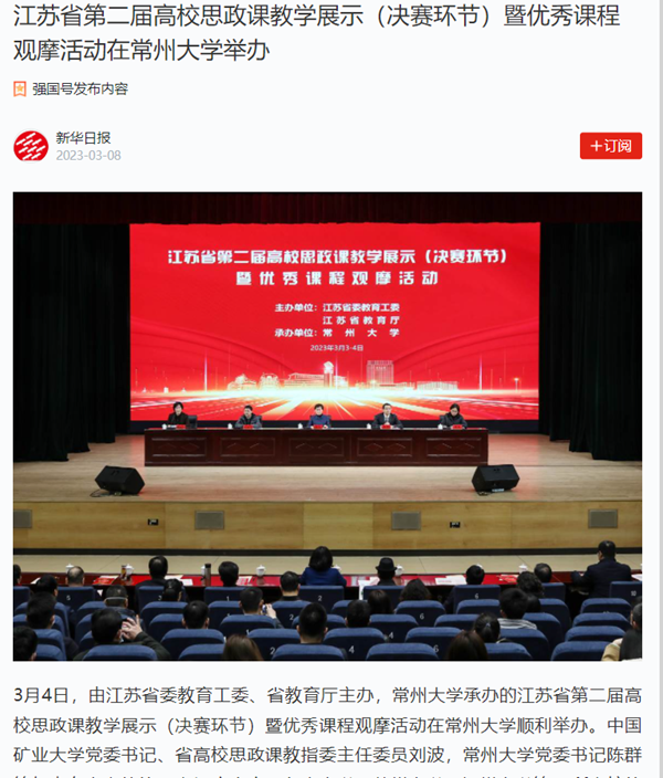 | 学习强国:江苏省第二届高校思政课教学展示(决赛环节)暨优秀课程观摩活动在常州大学举办 |