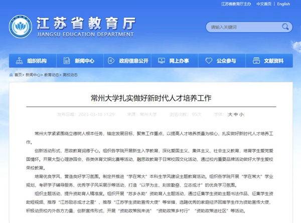 | 江苏教育网:常州大学扎实做好新时代人才培养工作 |