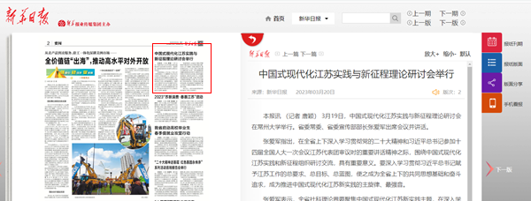 | 新华日报:中国式现代化江苏实践与新征程理论研讨会举行 |