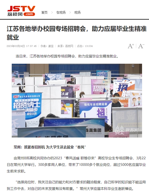 | 荔枝网:江苏各地举办校园专场招聘会,助力应届毕业生精准就业 |