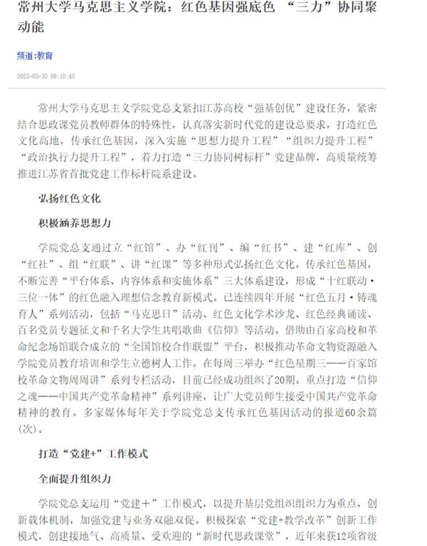 | 交汇点:常州大学马克思主义学院:红色基因强底色 “三力”协同聚动能 |