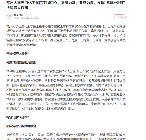 | 人民号:常州大学石油化工学院工程中心:党建为基,业务为翼,发挥“党建+业务”协同育人作用 |