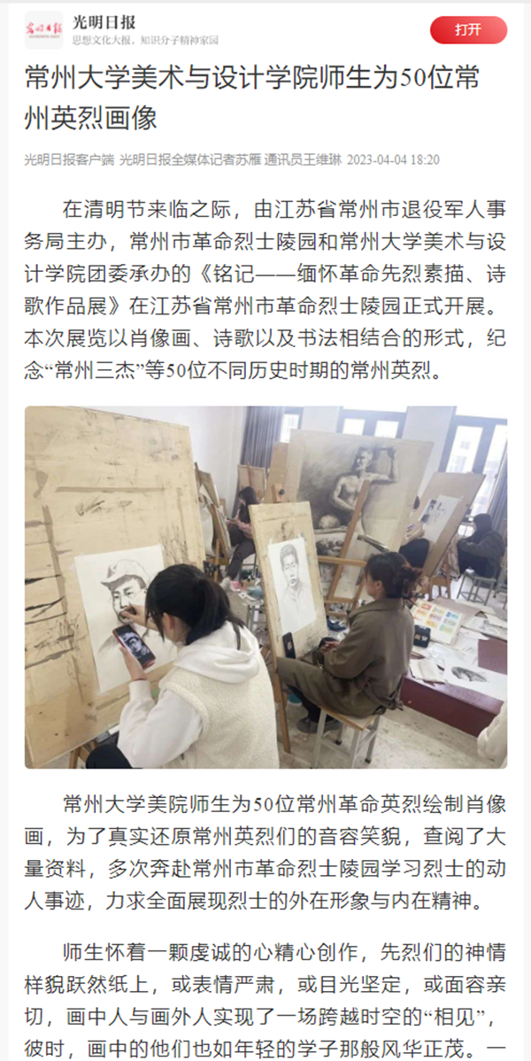 | 光明日报客户端:常州大学美术与设计学院师生为50位常州英烈画像 |