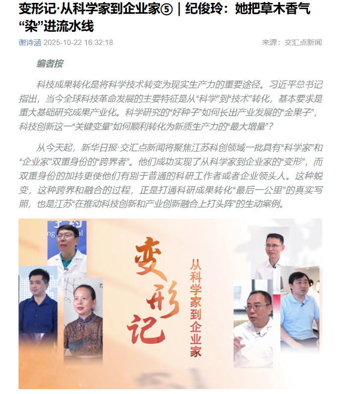 | 交汇点新闻:变形记·从科学家到企业家⑤|纪俊玲:她把草木香气“染”进流水线 |