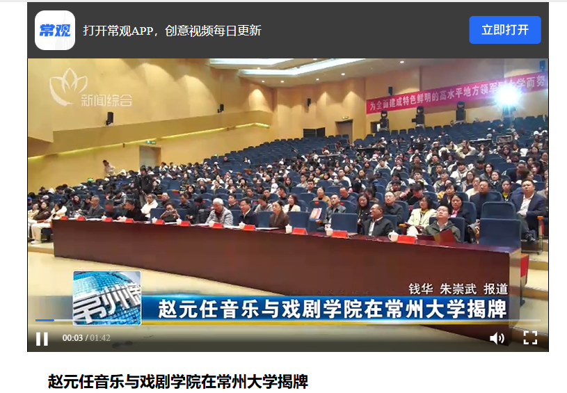 常州电视台:赵元任音乐与戏剧学院在常州大学揭牌