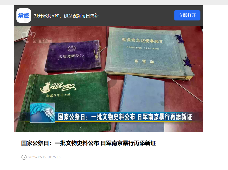 常州电视台:国家公祭日:一批文物史料公布 日军南京暴行再添新证