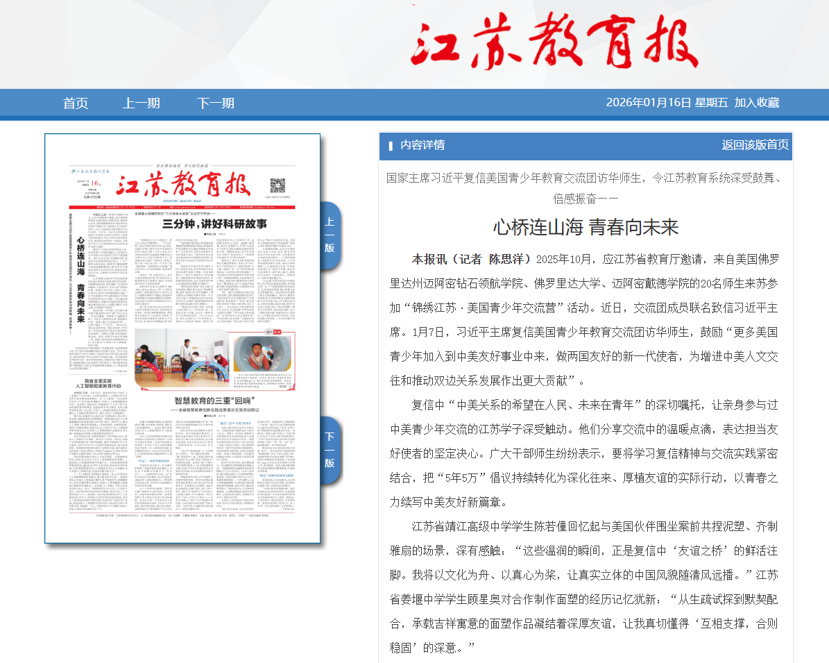 | 陈思洋 江苏教育报头版 2026.1.16 发布时间: 2026-01-16 |